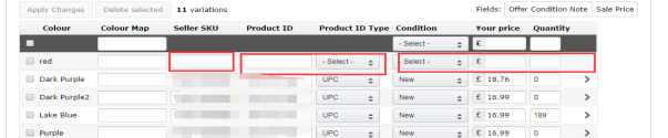 Step2: 进入变体编辑界面,填入你想合并的子体原UPC & ASIN,注意color & size等变体参数信息要与之前的保持一致