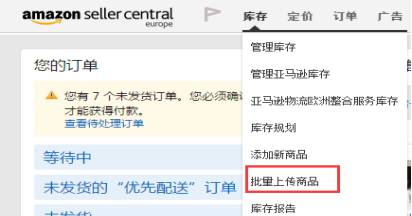 Step2:在AM后台选择“管理库存-批量上传产品”