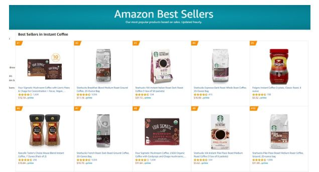 目前,Four Sigmatic的Lion's Mane和Chaga蘑菇咖啡混合产品在亚马逊上的速溶咖啡类别中排名第一,击败了Nescafe和星巴克。它的虫草和白桦茸得蘑菇咖啡混合物排在最畅销产品第8名。