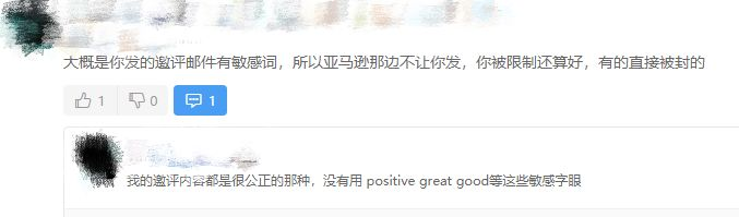 从邮件中我们可以看到,亚马逊指出了店家被发警告信的原因。简而言之就是亚马逊收到了很多买家对该卖家的投诉信息,卖家的邮件发送的太过频繁,有打广告和奖励或控制评论的嫌疑。评论区也有卖家进行猜测,认为该卖家的邮件里应该涉及了敏感关键词,所以才被亚马逊发了警告信。