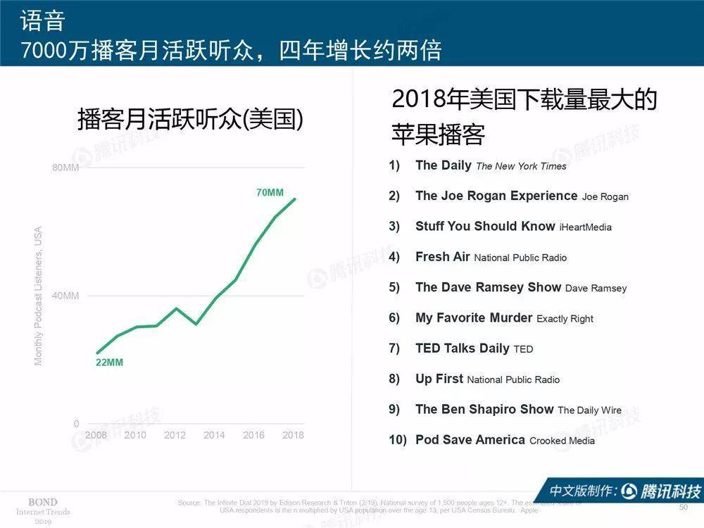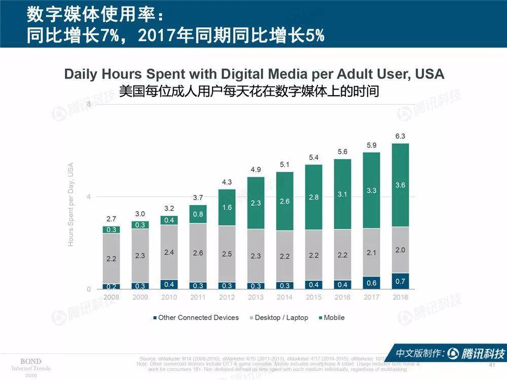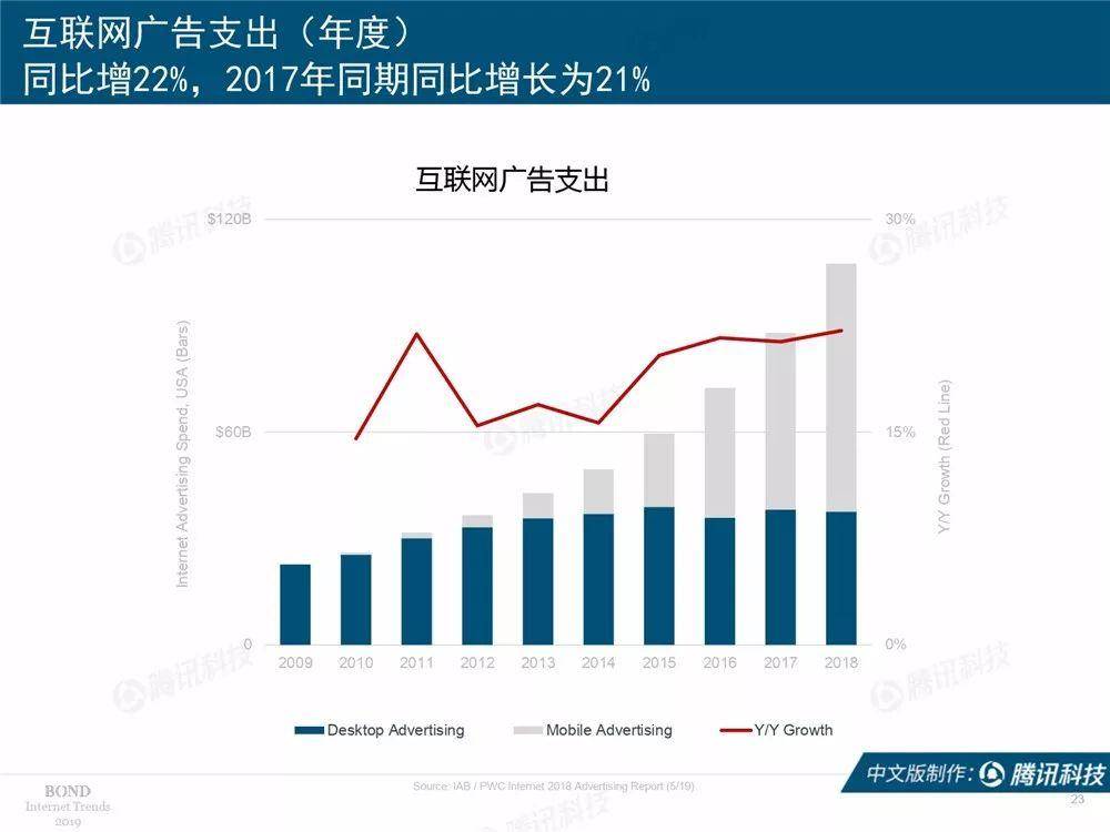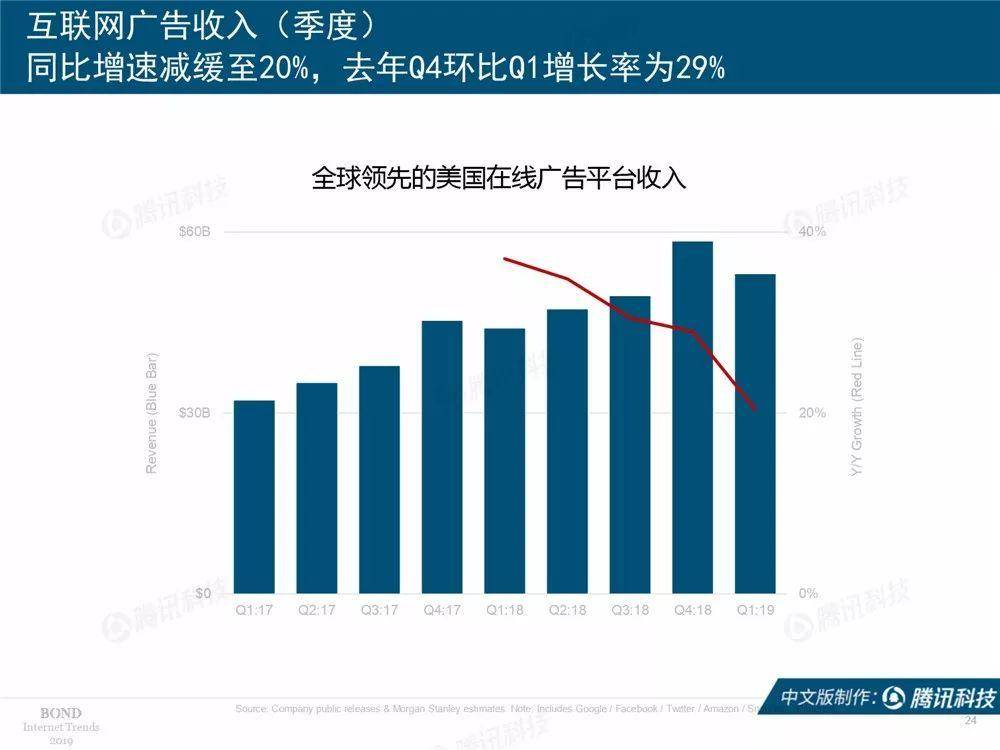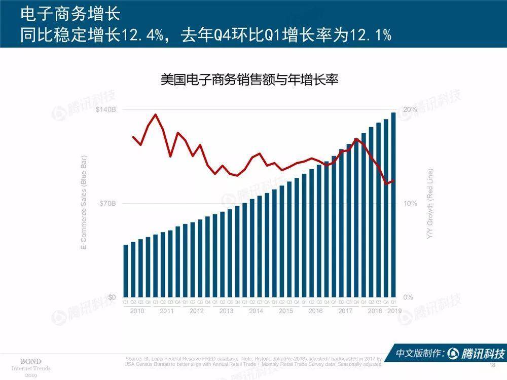 腾讯科技讯 北京时间6月12日凌晨,有“互联网女皇”之称的玛丽·米克尔发布了2019年的互联网趋势报告,这也是她第24年公布互联网报告。