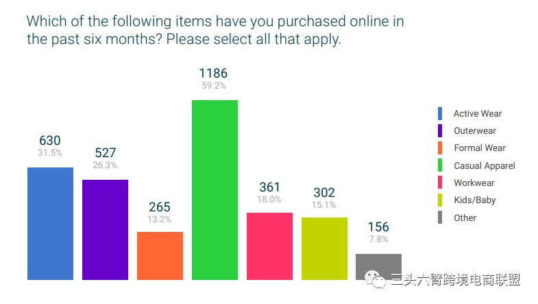虽然亚马逊最初将其服装业务集中在运动装上,但从那以后,他们已将业务扩展到每个市场的服装,有 59.2%的亚马逊消费者购买休闲服装。