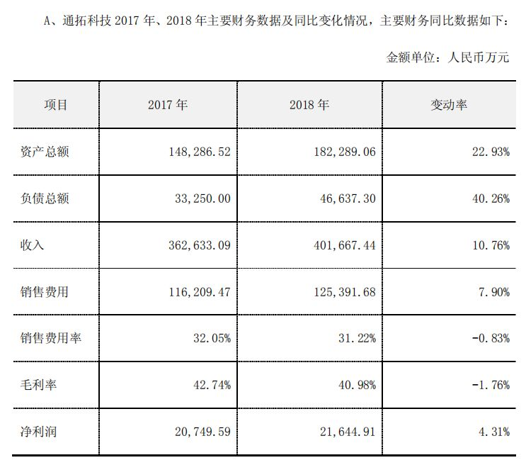 据雨果网APP了解,2017 年和 2018 年,通拓科技实现扣非后净利润分别为 2.02 亿元和 2.21 亿元。根据最新发布的公告显示: