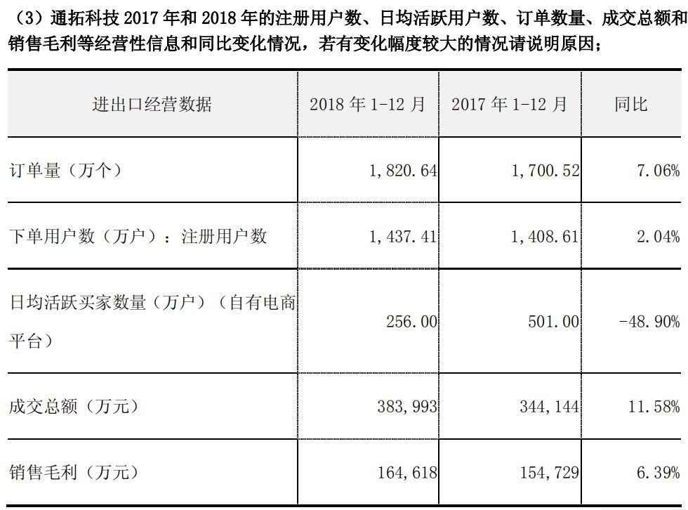 通拓科技表示,2018 年中美贸易摩擦开始后,通拓科技减少了在北美谷歌、脸书等网络平台的广告费投入。2019 年通拓自营平台将主要在欧洲、中东、印度、东南亚市场投入广告。2018 年第三方平台广告营销投入同比增加了 2,901.37 万元,使得除自营平台外的主营业务收入增加了 51,619.65 万元,总体业务呈向上趋势。