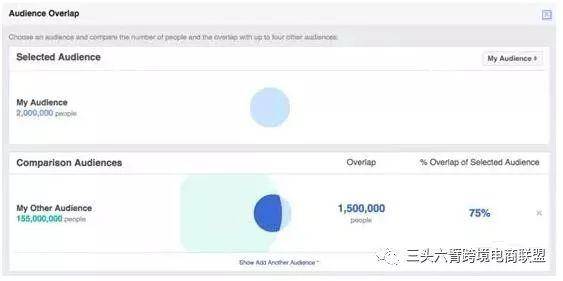 庆幸的是 Facebook 有 Audience Overlap 工具,可以让卖家了解受众是否发生了重叠,以及哪里重叠了,从而确保有更好的广告投放效果,降低成本。
