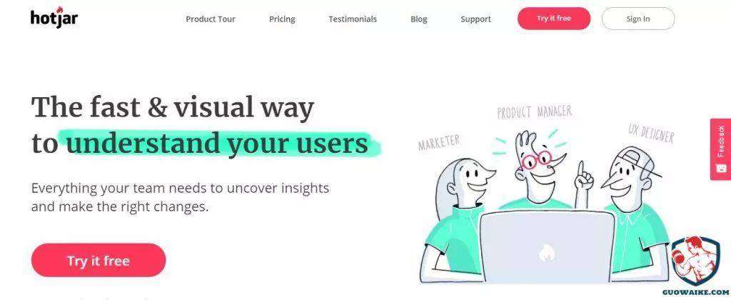这样子的工具去看所谓的visitor recording-用户行为记录,什么意思呢?就是他可以把每一个人如何使用你的网站的过程,完整的记录下来,不管他用手机还是电脑或IPAD,所以你可以看到客户是怎么浏览你网站的,他在哪边停下来,他点了哪个东西才到了下一页,他去看了多少页面,你可以完完整整的看到,在初期的时候这样子质量的分析跟优化反而更容易更快速的得到优化的结果。