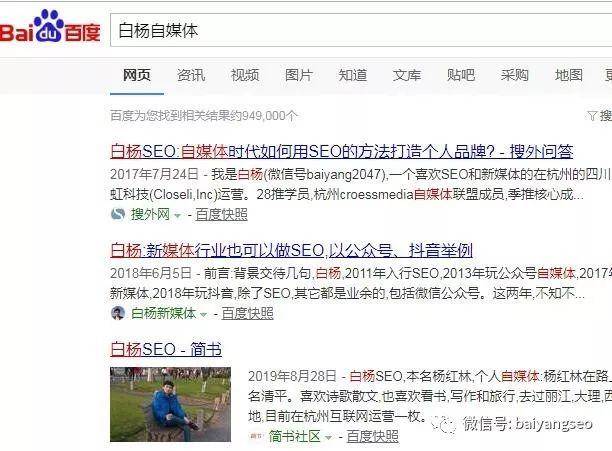 B、白杨本身擅长SEO,所以选重了百度排名较好的平台,而且还可以留下微信的简书与搜狐,后面防删把微信号去掉了。而做上去,已经一年半常年百度搜索这个词排在百度首页。