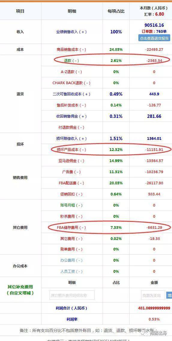 如上图所示,你能相信,工资没扣,办公成本没扣,刷单成本没扣,仅仅亚马逊的表格,一个店铺一个月763单,才赚了481块的毛利!