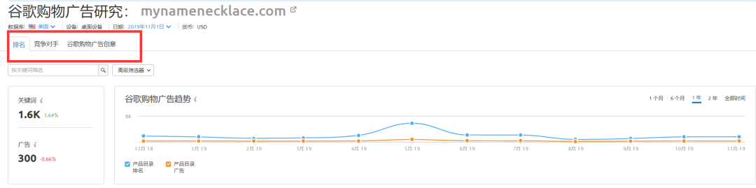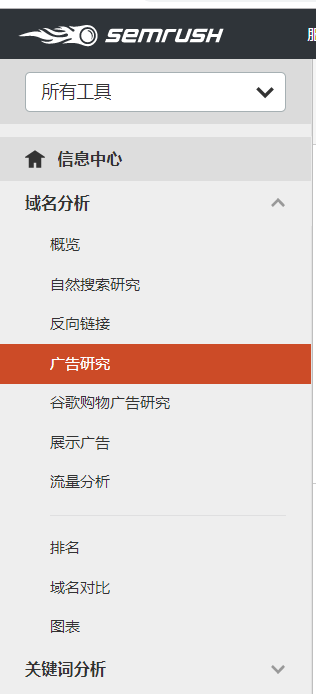 我们可以看到在所有工具中,如果想研究广告的话,最主要的要查看以下几个功能: