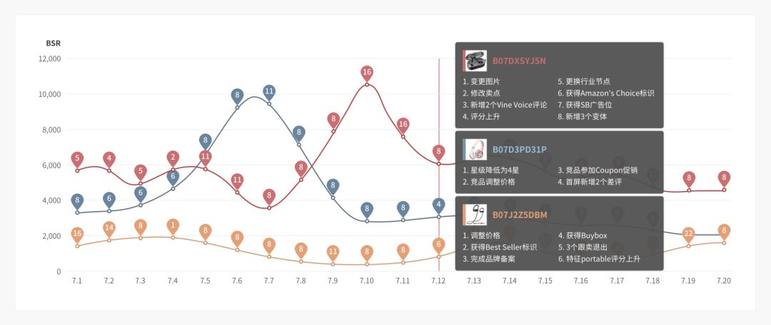 商品分配的不同类目及在不同类目的BSR排名趋势,帮助你合理分配行业节点——酒香不怕巷子深,但好产品怕放错类目。