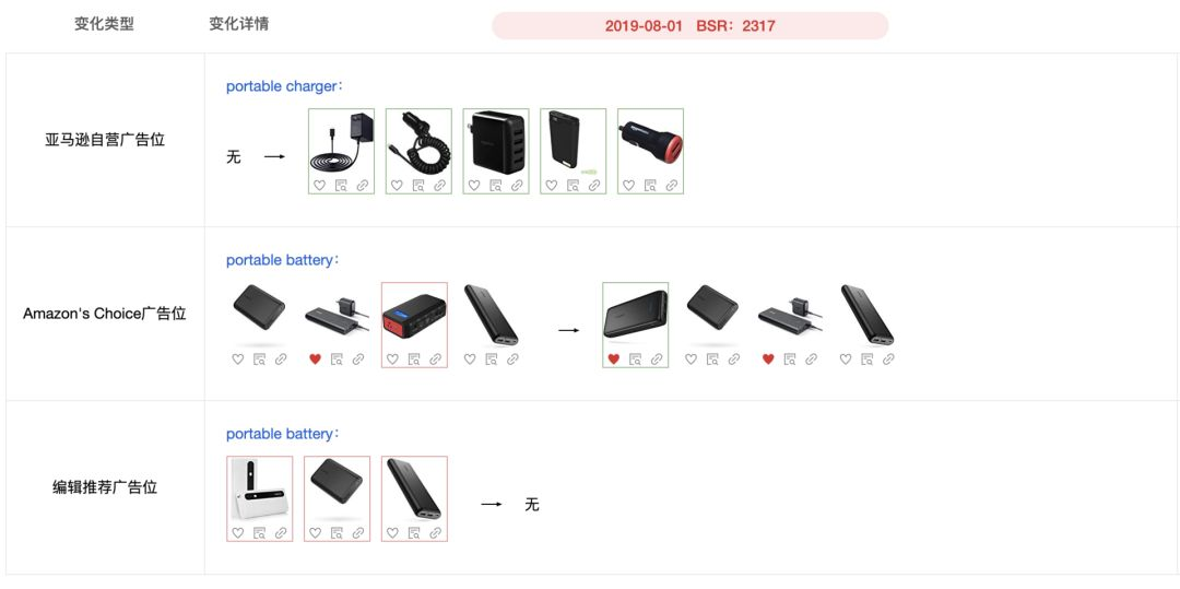 早在今年5月份鸥鹭上线的第一个版本里,就已经将这些新插入的“截流”模块全部监控起来,包括亚马逊什么时候插入了什么新的广告类型以及这个位置上的商品的变化,都会全部被捕捉到。