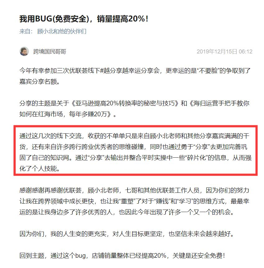 所以我也不断的在鼓励,优联荟的其他人进行分享。不管是线上的还是线下的,我都是如此鼓励,也会邀请他们来分享。