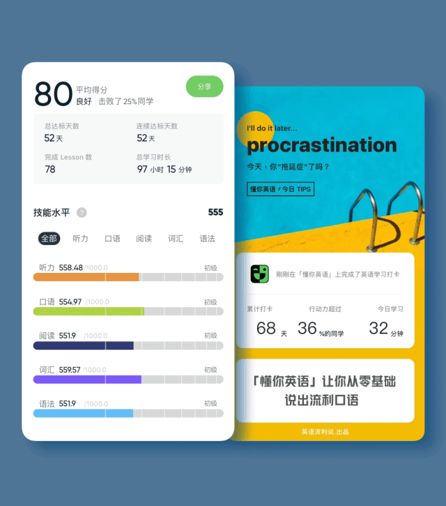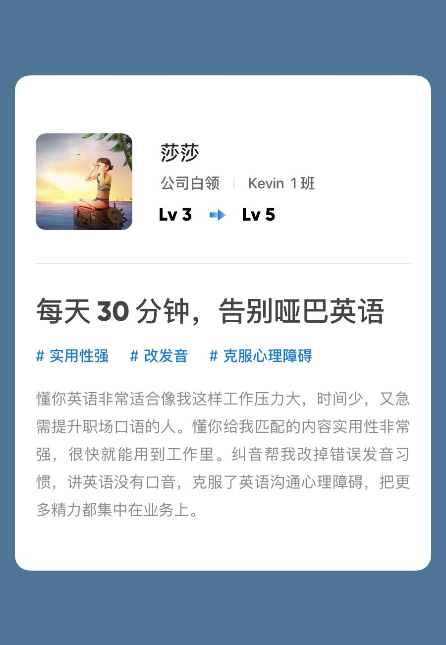 懂你英语能成为百万用户的共同选择,能在碎片时间里完成系统化学习目标。