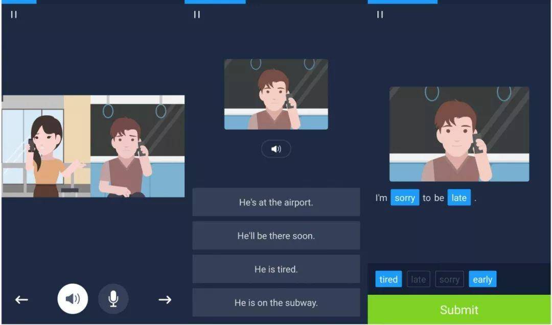 在接近真实的场景对话中训练语言能力,摆脱中英文对照背诵是快速提升英语表达能力的第一步。