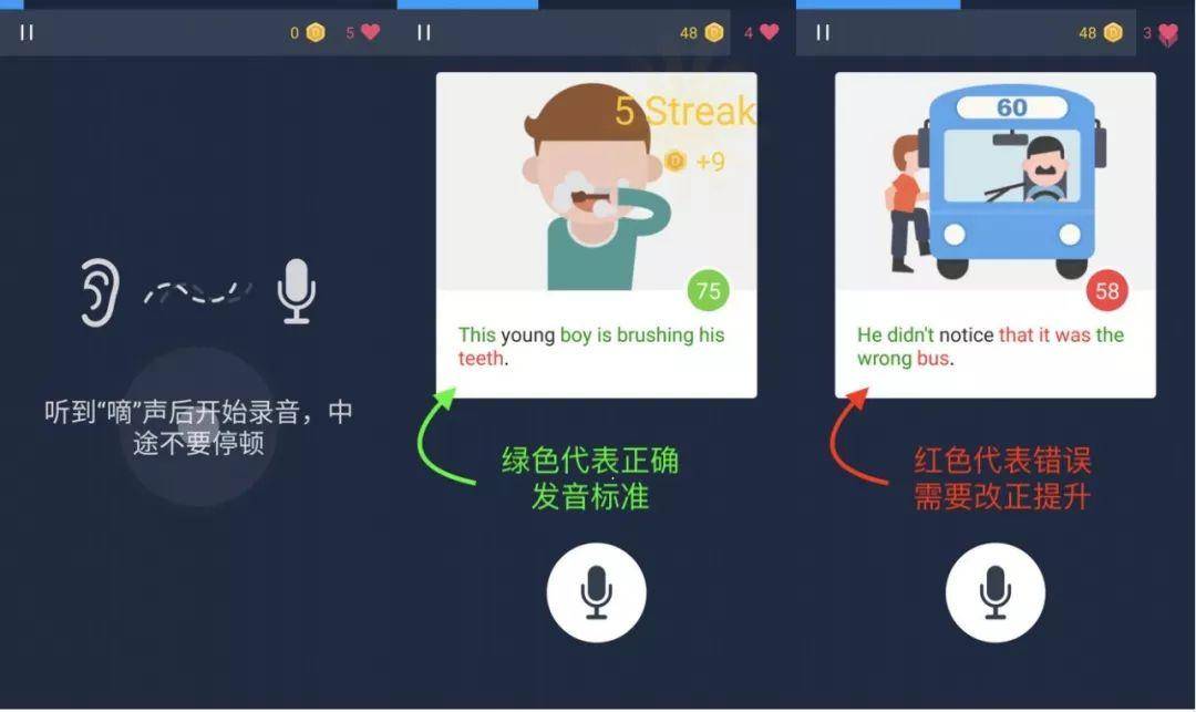 在懂你英语,你的每次学习都会被记录反馈,你的每次发音都会被识别纠正,绿色代表正确,红色代表错误,提供标准语音范例让你练习直到正确。