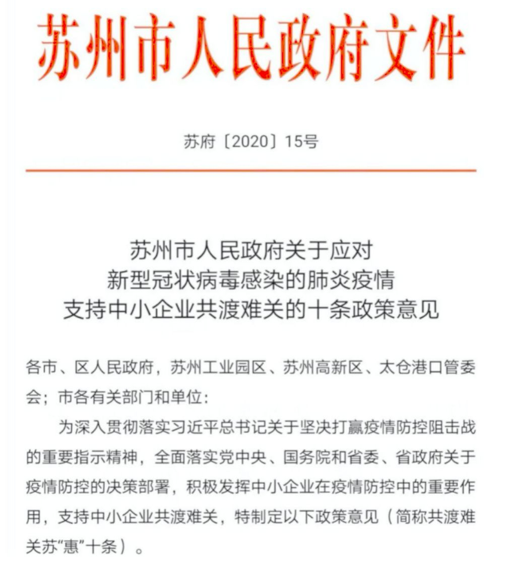 近期,苏州市政府出台了疫情下小微企业的扶持政策。