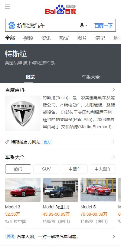 当我搜索“新能源汽车”,出现了某个品牌的专区,我会联想到,这个品牌一定是“新能源汽车”的头部品牌,甚至第一品牌。