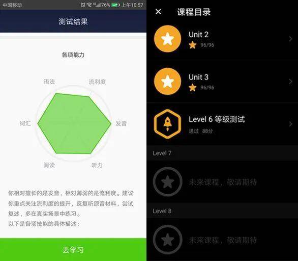 上面是我自己学习英语的一个心得,反正价格也不贵,里面的发音,包括我觉得每一关,流利说还是很严格的,大家可以试试