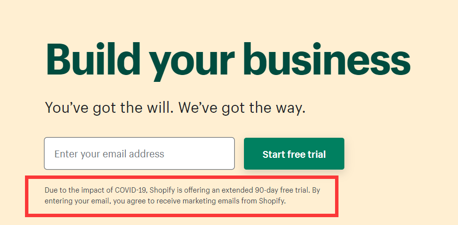 Due to the impact of COVID-19, Shopify is offering an extended 90-day free trial.