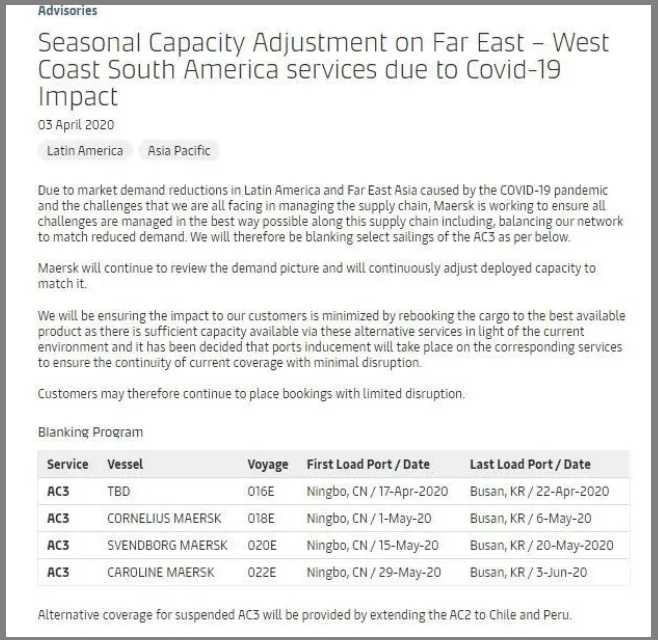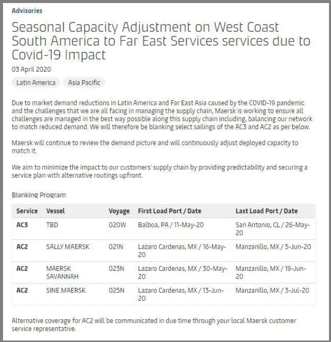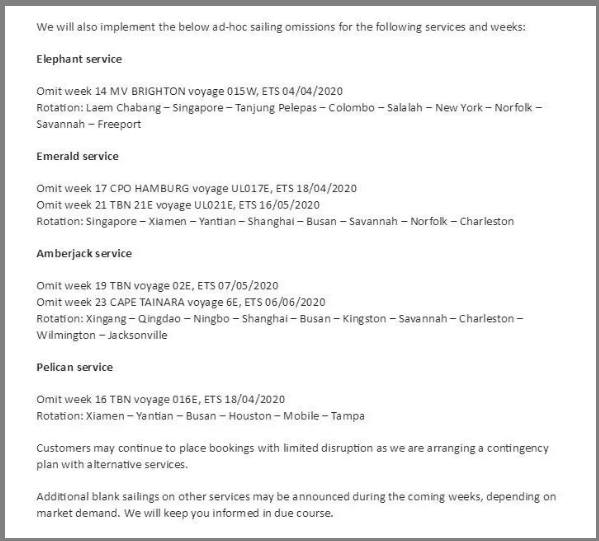 以上就是几大船公司巨头的停航计划,大家务必要注意了!