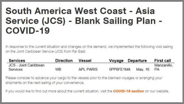 远东至南美西海岸/南美西海岸至远东停航信息如下: