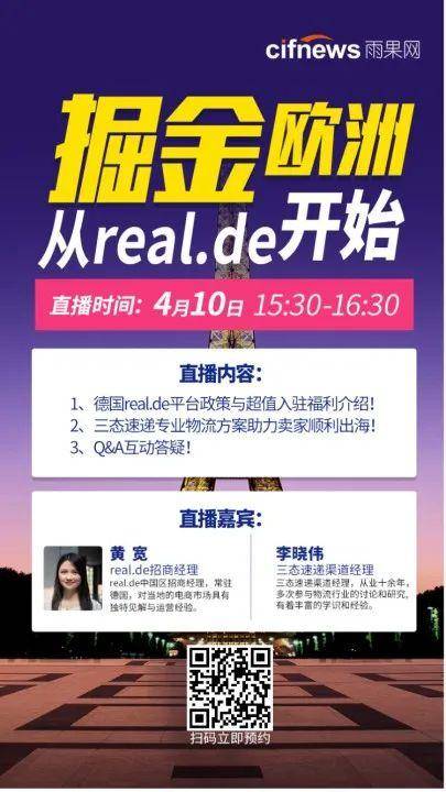 FBA限制非必要商品入库?不必慌张,卖家可以充分利用德国real.de平台提供的销售渠道获得成功,明日(4月10日)雨果直播教你轻松入驻real.de平台,提供专业的物流方案打破出海难关。快快预约起来吧!点击【阅读原文】预约观看直播
