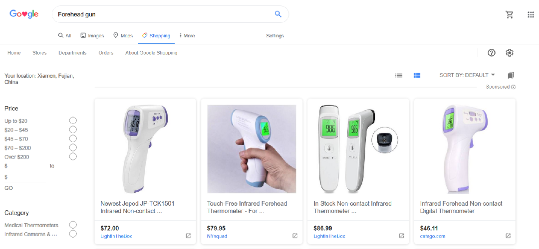 Google搜索额温枪,咱们是可以看到广告的,这说明这个词是没被限制的。