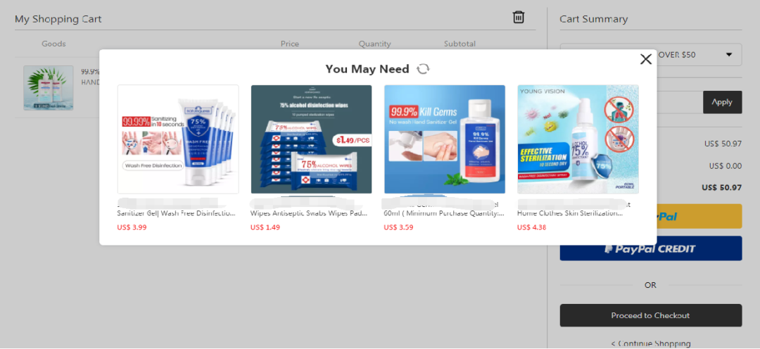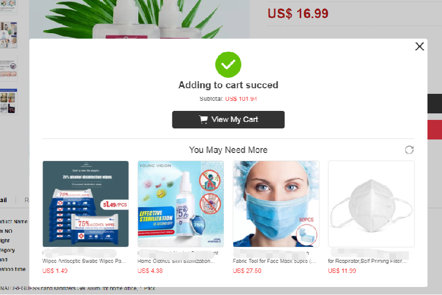 方法一: 广告落地页加购推荐,加入购物车自动触发弹窗推荐口罩产品