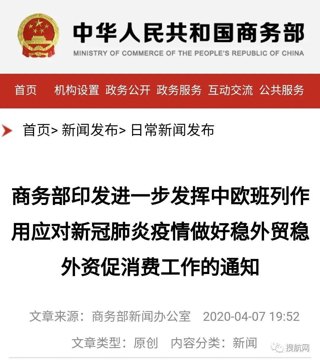 随着疫情对中国和欧洲外贸和跨界物流业的冲击加剧,商务部四月初印发《进一步发挥中欧班列作用应对新冠肺炎疫情做好稳外贸稳外资促消费工作的通知》。