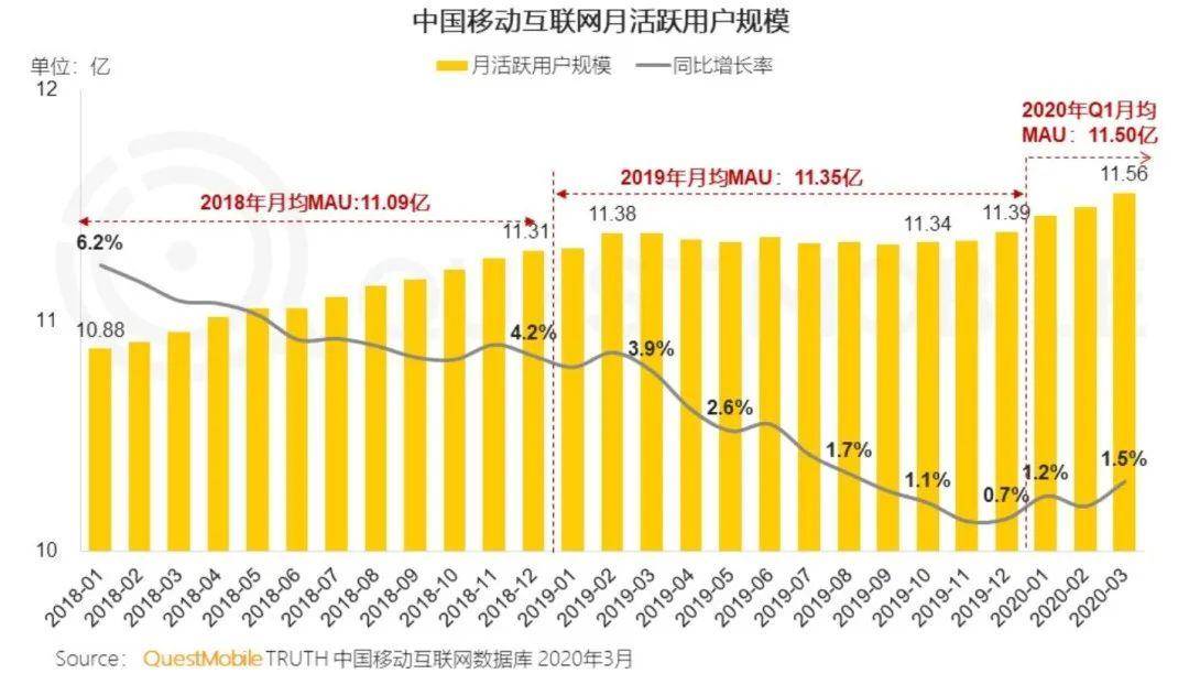 注:中国移动互联网月活跃用户规模(来源:Quest Mobile)