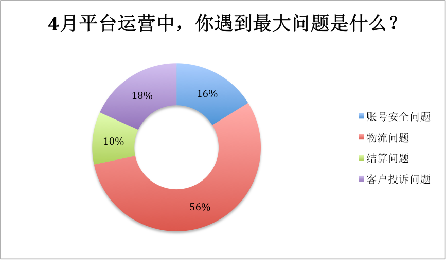 雨果网的一项调研显示,在4月的平台运营中,卖家遇到的最大问题,除了众所周知的物流问题,客户投诉问题也比较突出。其次是账号安全问题以及结算问题。