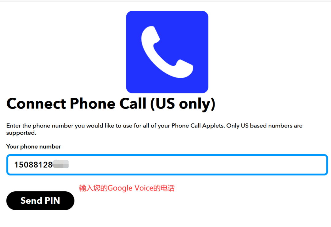 步骤七:这个时候输入你想要激活的Google Voice的电话,如下图: