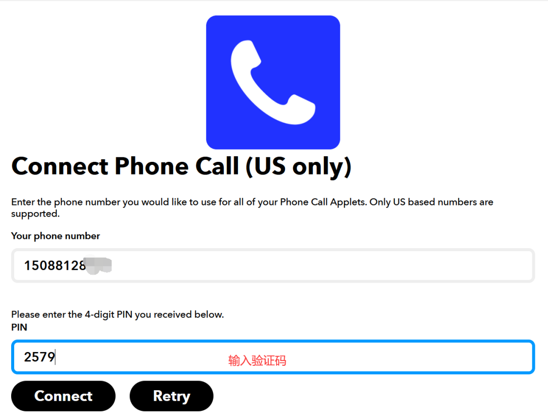 回到IFTTT,填入你要激活的Google Voice的电话之后呢,接下来系统就会给你打一个电话,你需要填入电话的Pin码,也就是4位数的验证码