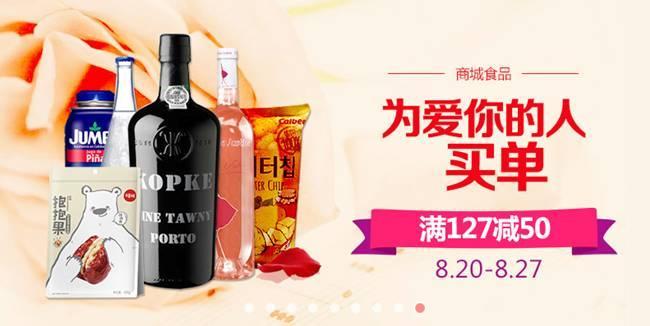 1号店的“为爱你的人买单,陪你一起过77”则秉持了一贯的食品为主的概念,此次的主打,自然是零食类和糕点类,也不乏有红酒及饮料之类的,除此之外,还设有“特惠惊喜,陪你到永9”系列,每款产品售价尾数均以9结尾,寓意长长久久。