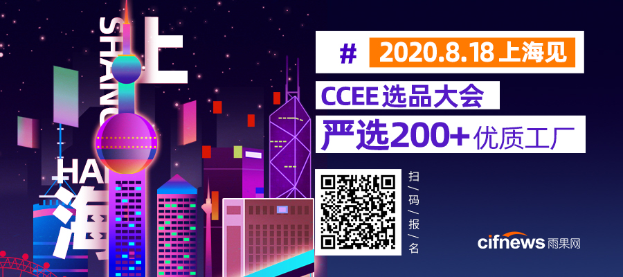 8月18-19日,上海光大会展中心 1楼(徐汇区)将举办2020 CCEE(上海)雨果网跨境电商选品大会暨采购节。百家工厂集体携万级SKU登台亮相,平台官方代表及上半年优秀卖家也将出席,共谱2020下半年旺季作战图。点击【阅读原文】或扫码免费参会学习。