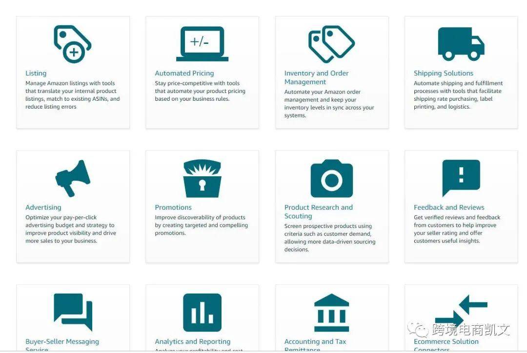 打开这个板块之后,亚马逊服务市场根据不同需求做了很多细分,比如关于Listing、Automated Pricing、Feedback and Reviews等。