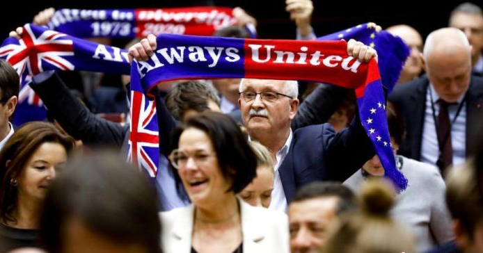 ▲资料图:当地时间1月29日,欧洲议会批准“脱欧”协议。投票结束后,在场议员手拉手唱起苏格兰经典歌曲《友谊地久天长》,以这首家喻户晓的“离别之曲”送别英国。