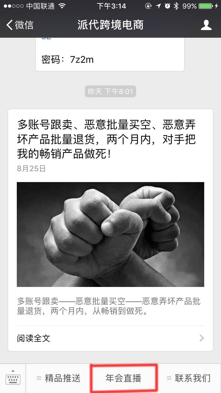 方法一:打开【派代跨境电商】公众号,从底部菜单栏【年会直播】进入直播间,现在就可以去占座。