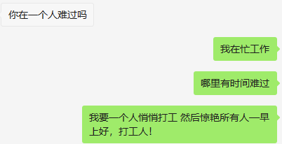 生活里80%的痛苦来源于打工,但是我知道,如果不打工,就会有100%的痛苦来源于没钱,所以在打工和没钱之间,我选择打工!