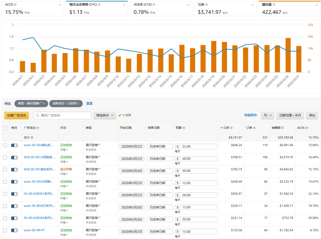 下面给大家展示一下几个Sponsored Display做得比较好的投放案例。放这些案例主要是想给大家说明只要投放和优化的方法得当,Sponsored Display也是能够有不错的数据表现的,,这个广告产品还是值得我们花钱花心思去投入的,特别是在Sponsored Products和Sponsored Brands竞争越来越激烈,流量成本越来越高的大背景下。