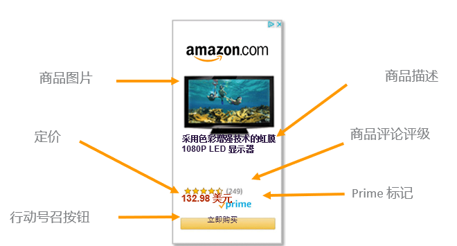 商品投放是最近才出来的新功能,之前都是没有的,也是我们今天文章要重点讲的内容。商品投放的广告位置都是在亚马逊站内,可以定点投放具体的ASIN或者具体的类目,而且广告位置都是在亚马逊商品的详情页面。但是并不是在大家比较熟悉的Sponsored products related to this item这种Sponsored Products的常见详情页广告位,而是主要体现在下图所示的几两个位置:产品详情页顶部条纹区域,五点描述的下方和购物车的下方,以及搜索页面的左边等位置。目前商品投放功能在北美,欧洲以及日本站点都开通,还支持自定义标题和logo。