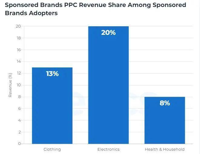 我们还看到,Electronics20%来自赞助品牌广告的收入份额最高,其次是Clothing的13%和Health&Household的8%。