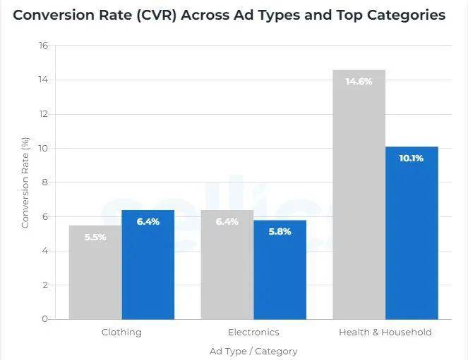 在所有亚马逊类别中,赞助品牌广告的转化率大多要低于SP广告。这可能是由于赞助商品牌广告(不包括视频广告)通常主要还是引起购物者对品牌或系列产品的关注。