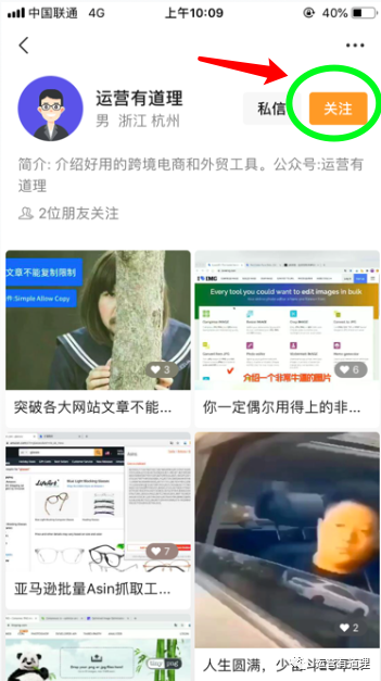 识别二维码进去后,点击关注按钮