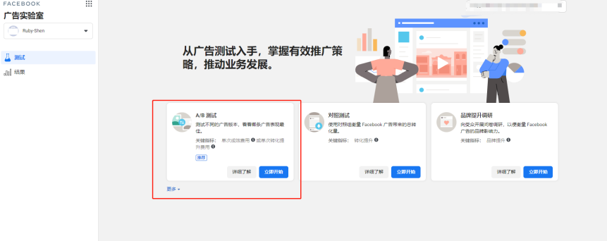 为提升广告主用户体验,Facebook现在允许广告在以下三个入口设置A/B Test: