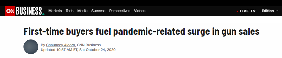 更令人担忧的是,部分美国民众开始囤积枪支。而在早前,据CNN报道,今年至今,全美枪支销售量已超过1540万支,仅9月就售出160万支,同比大涨61%。
