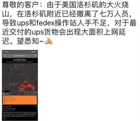 再加上早前加州山火肆虐,UPS和FedEx操作站人手不足,导致近期交付的UPS货物会出现大面积延迟。