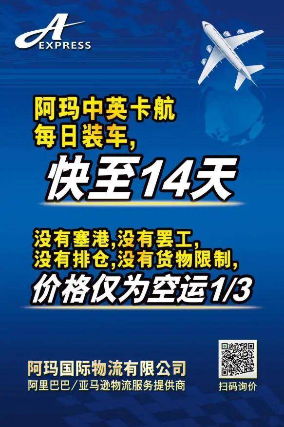而在众多提供卡航的物流商中,阿玛国际物流的中英卡航可以说是其中的佼佼者,早在今年4月,阿玛就开始专注于中英卡航的搭建和运营,目前已经做到了每天装车,全程快至14天,时效媲美空运。卡航全程操作稳定,口岸通关效率极高,而价格仅为空运1/3,性价比高到没朋友。各位有需求的老铁,可以识别下方二维码,添加阿玛物流客服咨询。