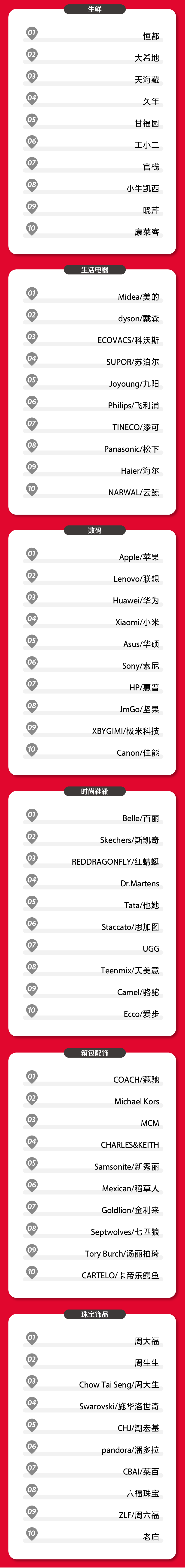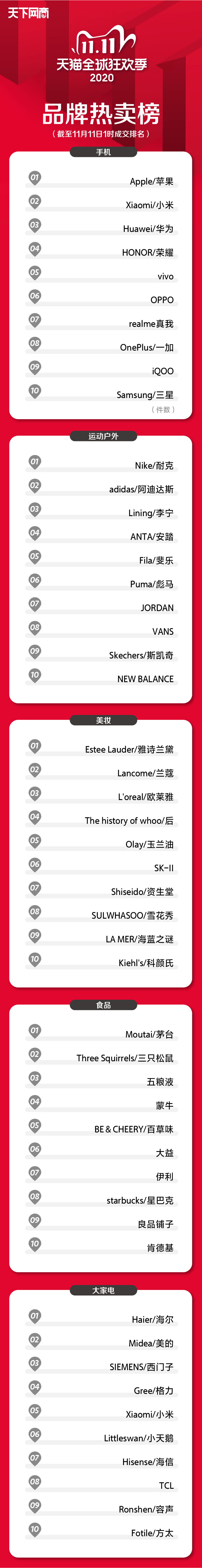 我们在这里附上11月1日0点至11日1点的各行业品牌实时成交榜。祝各位商家继续大卖!
