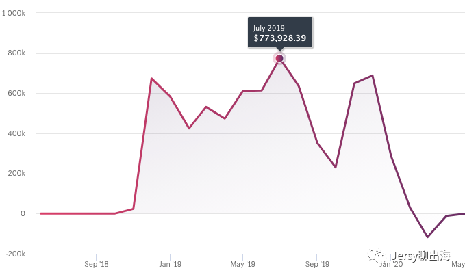 整个2020年销售额为54万美金,出了大约两万单,客单价为23刀 ,广告的cpa为9刀。可以看出这些产品的需求一直存在,一些老旧款式依旧可以跑出漂亮的数据。